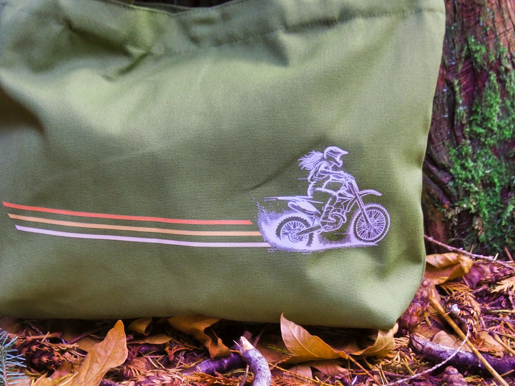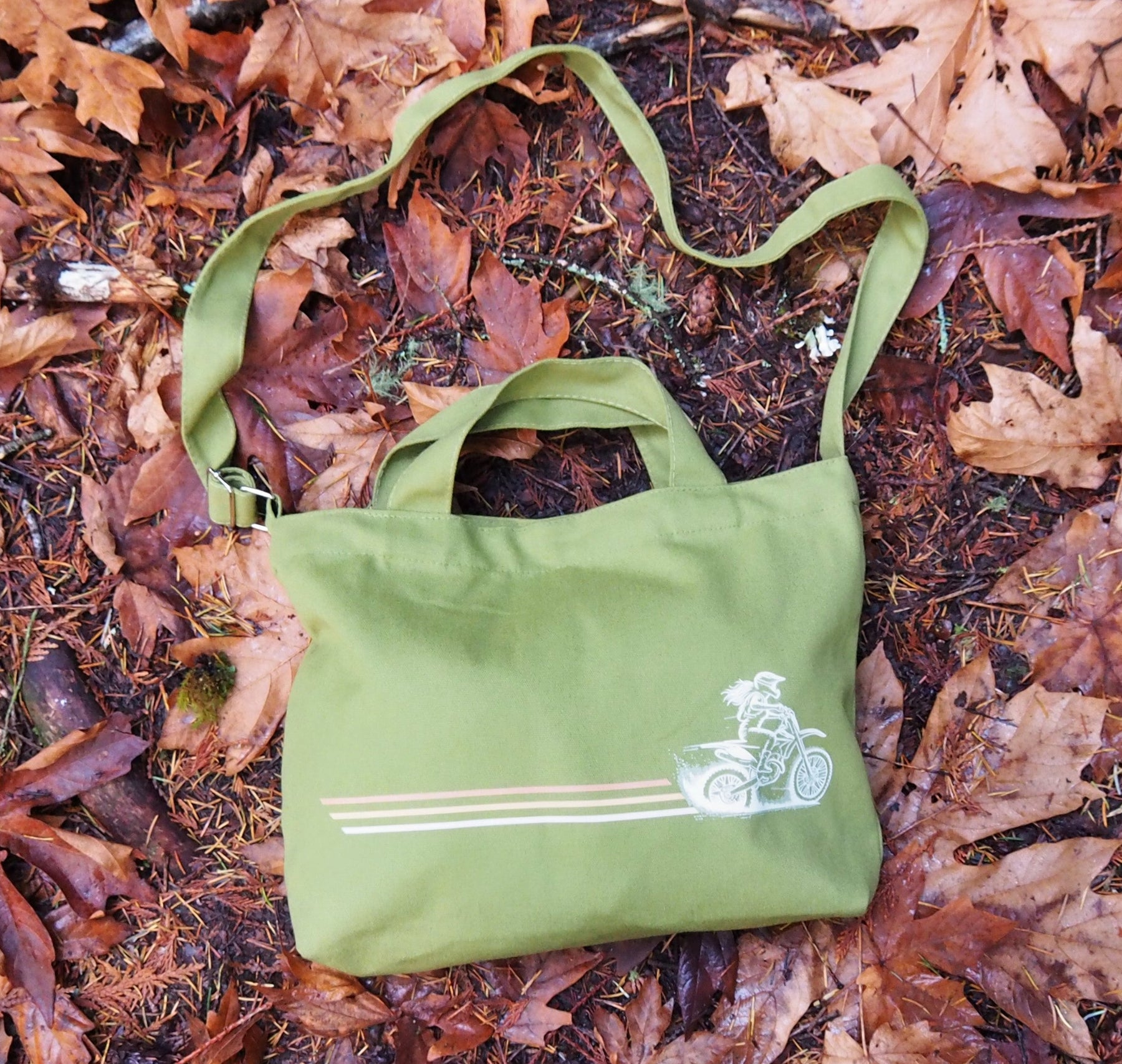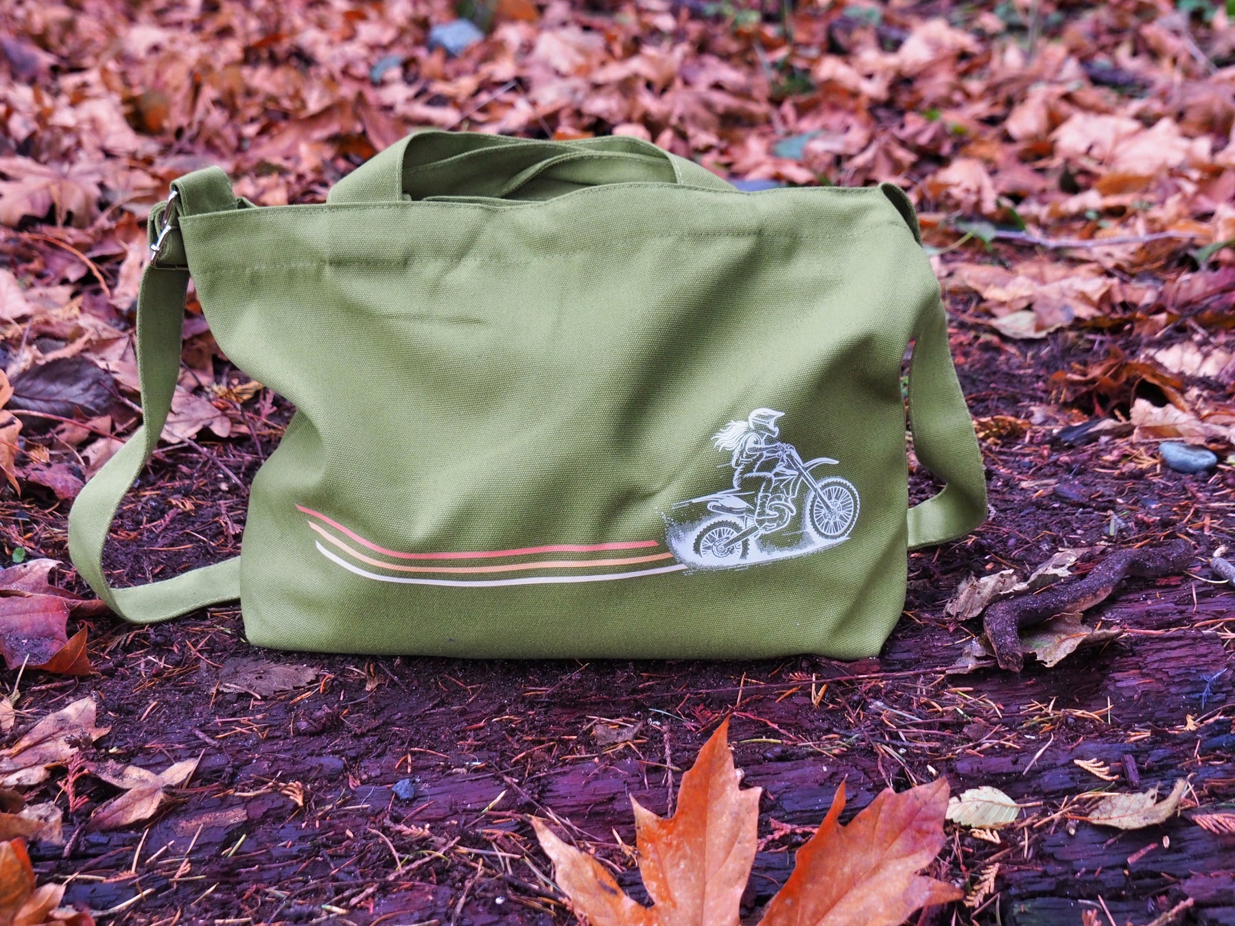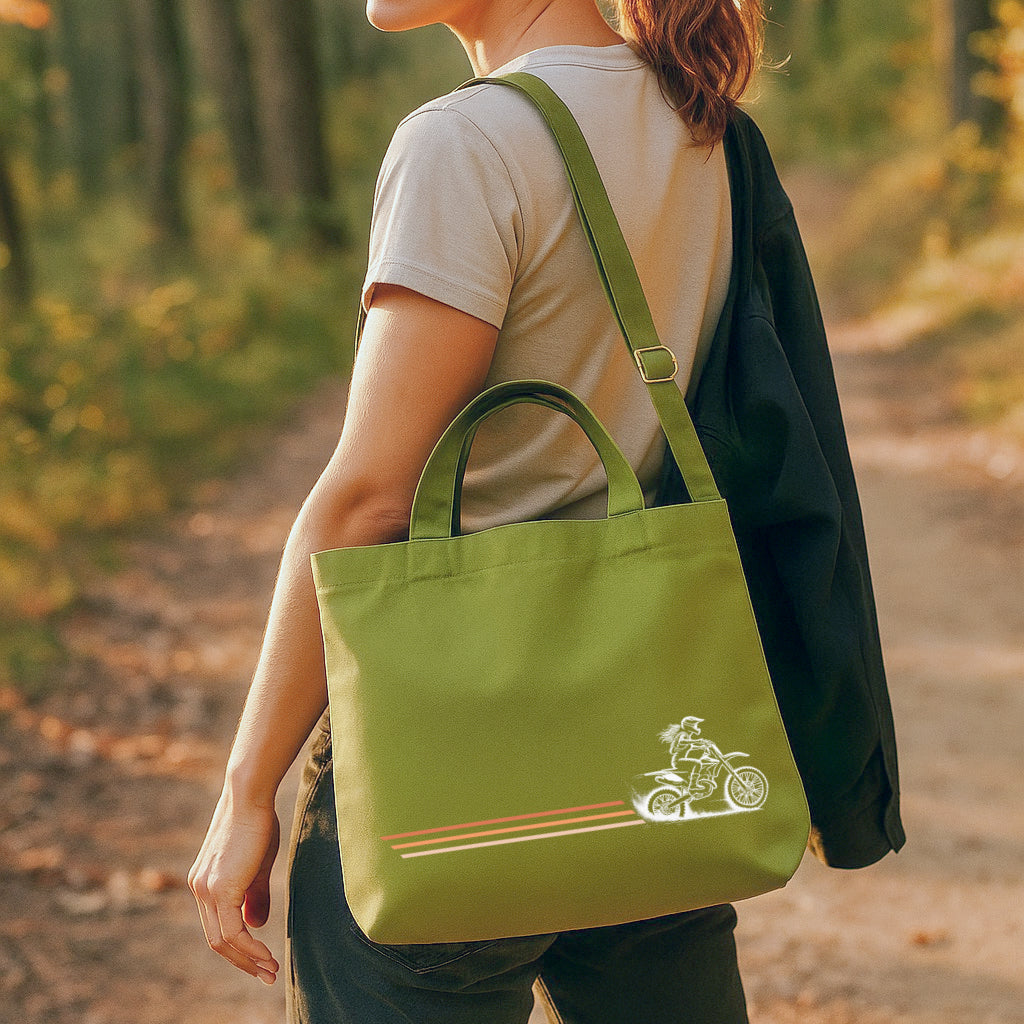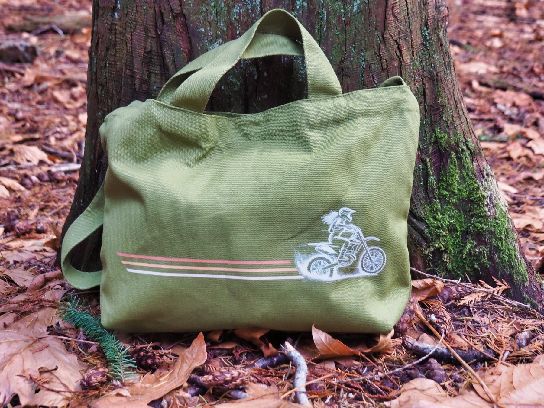 Wear it crossbody while you move, grab the top handles when you’re off the bike, and trust the inside zipper pocket to keep your small valuables locked down. Whether you’re heading to the trails, the track, the garage, or a post-ride coffee, this tote brings vintage moto energy everywhere you go.
